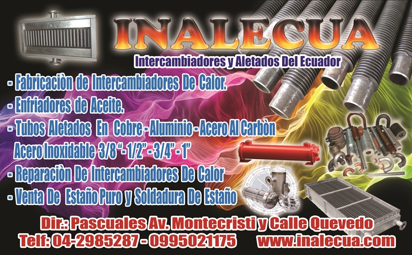 " INTERCAMBIADORES Y ALETADOS DEL ECUADOR ", le da una cordial bienvenida, y nos place informarle acerca de nuestros productos y servicios, así, nuestro negocio nace con el objetivo de transformarse en una empresa de intercambiadores de calor y de servicio especializado, ofreciendo solución de la forma mas profesional a sus necesidades. Contando con una experiencia de mas de 10 años en el mercado de Intercambiadores de calor (radiadores) junto a los conocimientos técnicos en transferencia de calor y equipos térmicos de sus profesionales,